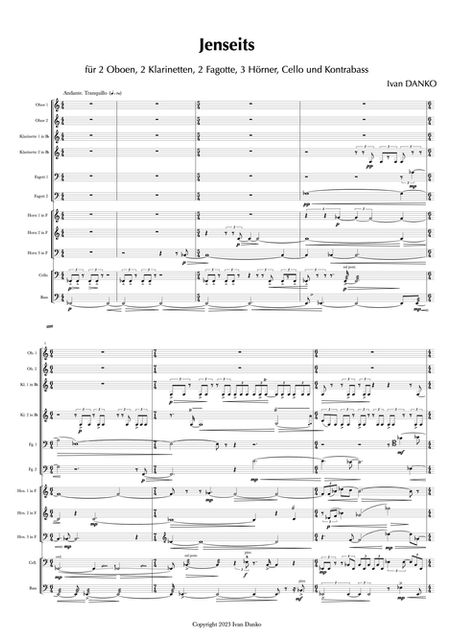 „Jenseits“ für 2 Oboen, 2 Klarinetten, 2 Fagotte, 3 Hörner, Violoncello und Kontrabass